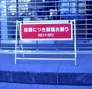 「店頭につき就寝お断り」 寝ることも立ち小便も禁止です。場所は駐車場。 こんな看板は見たことありません
