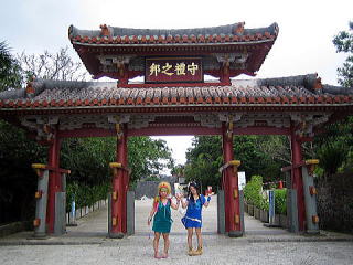 まずは那覇空港からゆいレール(沖縄都市モノレール)で終点の首里駅に着き、そこから100円バスで首里城に向かうつもりでしたが駅を下りたとたんタクシーの運転手さんにナンパ?され「首里城ならワンメーターで入り口まで行くさ〜」って言うのを信じて?クーラーの効いた車中へ…ほんの数分で首里城公園に着き、守礼門から首里城へと向かうのだけど、さすがに暑い! 汗を拭き拭き階段を上がり正殿前に到着した時にはノドがカラカラ…あ〜ビール飲みたい(笑)