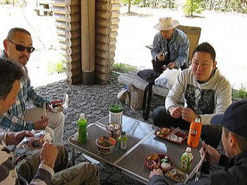 今日のお昼は大規模林道途中にある東屋でお弁当です。
