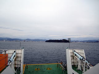 その平清盛が見下ろす海岸には第2音戸大橋が建設中です。 この大きな橋をクレーンで吊り上げてドッキングさせたのは見応えあっただろうな〜 (見学に行けばよかったな) 左の隅に現在の音戸大橋が見えます。 狭い海峡を貨物船やフェリー、その間を小さな渡船が行き交うのを見るのも楽しいもんですね。 でも寒いけど… |