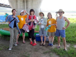 私たちは「西突隊」というチームで毎年カヌーで参加していますが、今年はスポーツクラブ以外でも仲の良いエアロビ仲間達(飲み仲間?)も参加することになり、イカダ繋がりでSCに入会たM君がイカダを製作し「西突隊・エアロビ班・イカダ部」としてエントリーしたのでした