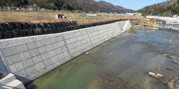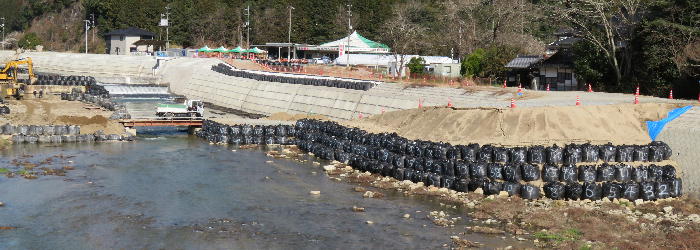 2025年護岸工事が終了している上流を「洪水を防ぐ」護岸工事がされている
