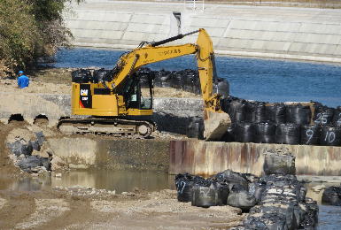 通行路と仮橋を架けての作業