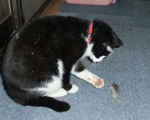 子ネズミを連れ帰って遊んでいるジュリ5歳の頃