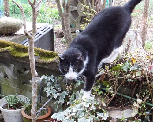 ネズミを捕ってきてサンデッキで遊んでいるジュリ(5歳の頃)