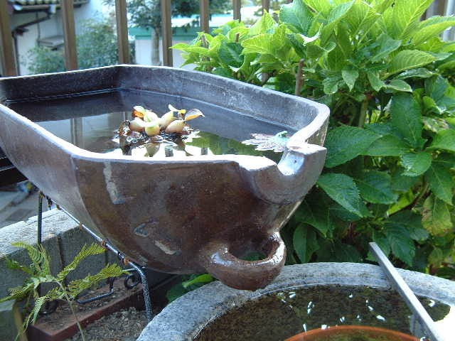 それに水を入れて睡蓮鉢の様にしたものを発見しました。