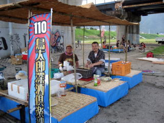 パフォーマンスも終了し、美味しい焼き鳥を食べ、ビールもゴクゴクしながら河原宴会に突入だ〜