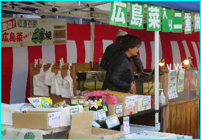 JA(広島菜や加工品)や民間の店(漬け物や広島菜入り二重焼き)