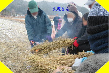 今年も干支(午年)がいなく、最高年齢者の矢原さん(92歳)が火付け
