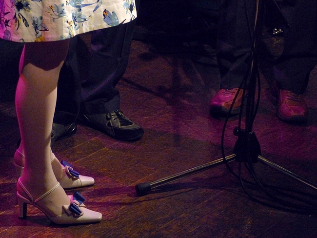 主役は後ろ。1ステージが終わり休憩中のDick山中のおちゃめぶりをご覧下さい。